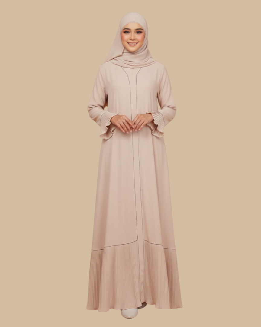 Abaya Dahlia adalah jubah yang memberikan keselesaan maksimum kepada pemakai. Rekaan eksklusif ini menampilkan sentuhan seni butik, manakala fabrik dipilih daripada bahan berkualiti tinggi. Rekaan pleated pada skirt dan lengan menambah nilai estetik pada pakaian ini.
