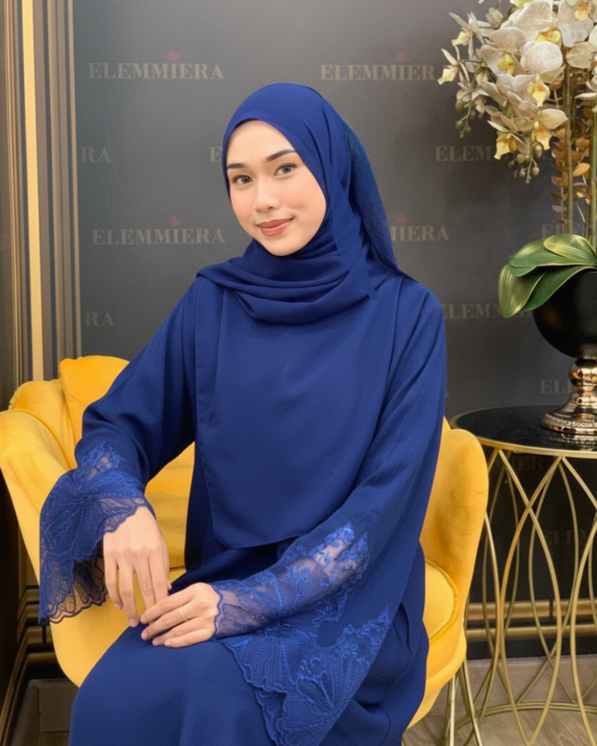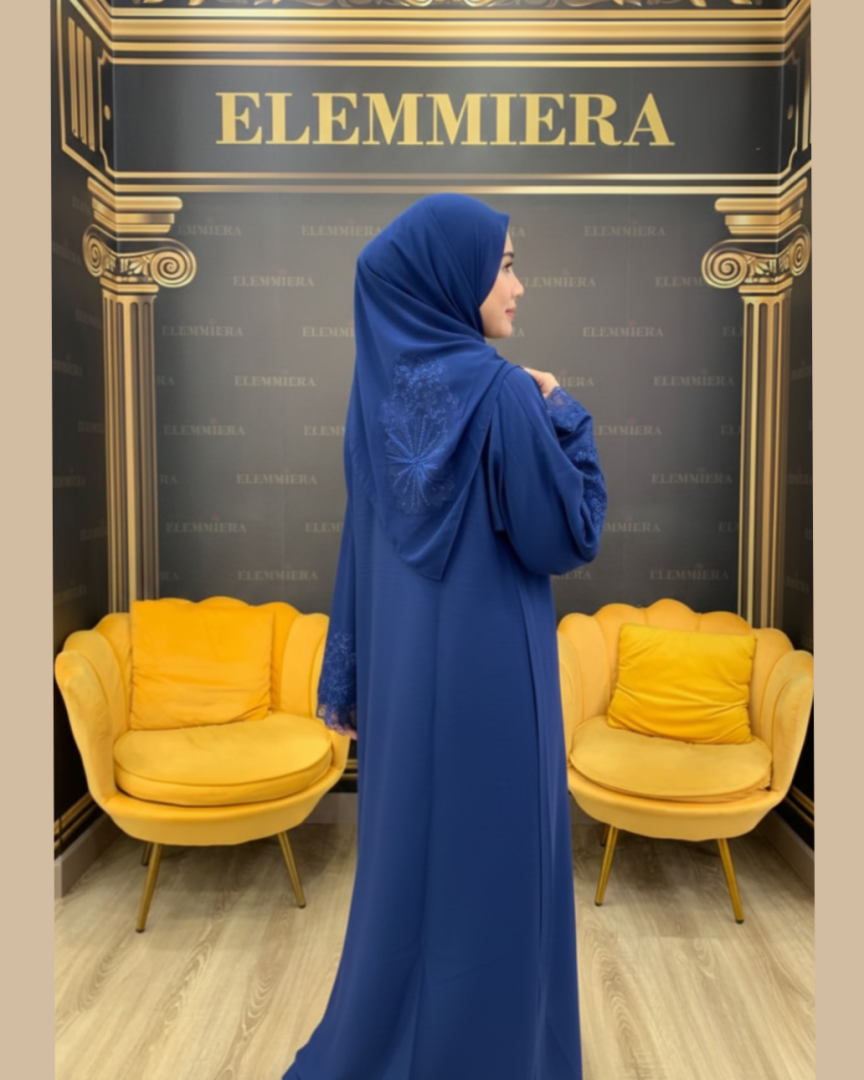 Abaya moden dari UAE dengan potongan longgar dan berlengan panjang, direka untuk keselesaan maksimum. Lace bunga besar pada hujung lengan menambah sentuhan elegan, lengkap dengan shawl sepadan. Fabrik premium dan kemasan butik menyerlahkan gaya eksklusif.