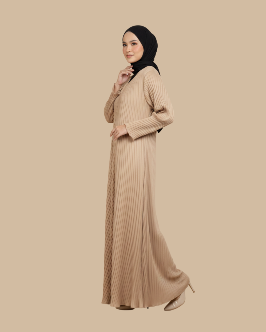 Abaya Izara Pleated ialah abaya moden eksklusif yang direka dan dibuat di Malaysia. Dihasilkan dengan potongan longgar dan berlengan panjang, ia memberikan keselesaan maksimum serta tampilan elegan untuk pemakai. Rekaan pleated yang kemas digabungkan dengan sentuhan jahitan butik menjadikan Abaya Izara tampak mewah, minimal dan anggun. Sesuai untuk kegunaan harian, majlis, mahupun ibadah, Abaya Izara direka dengan ciri praktikal yang memudahkan wanita moden.