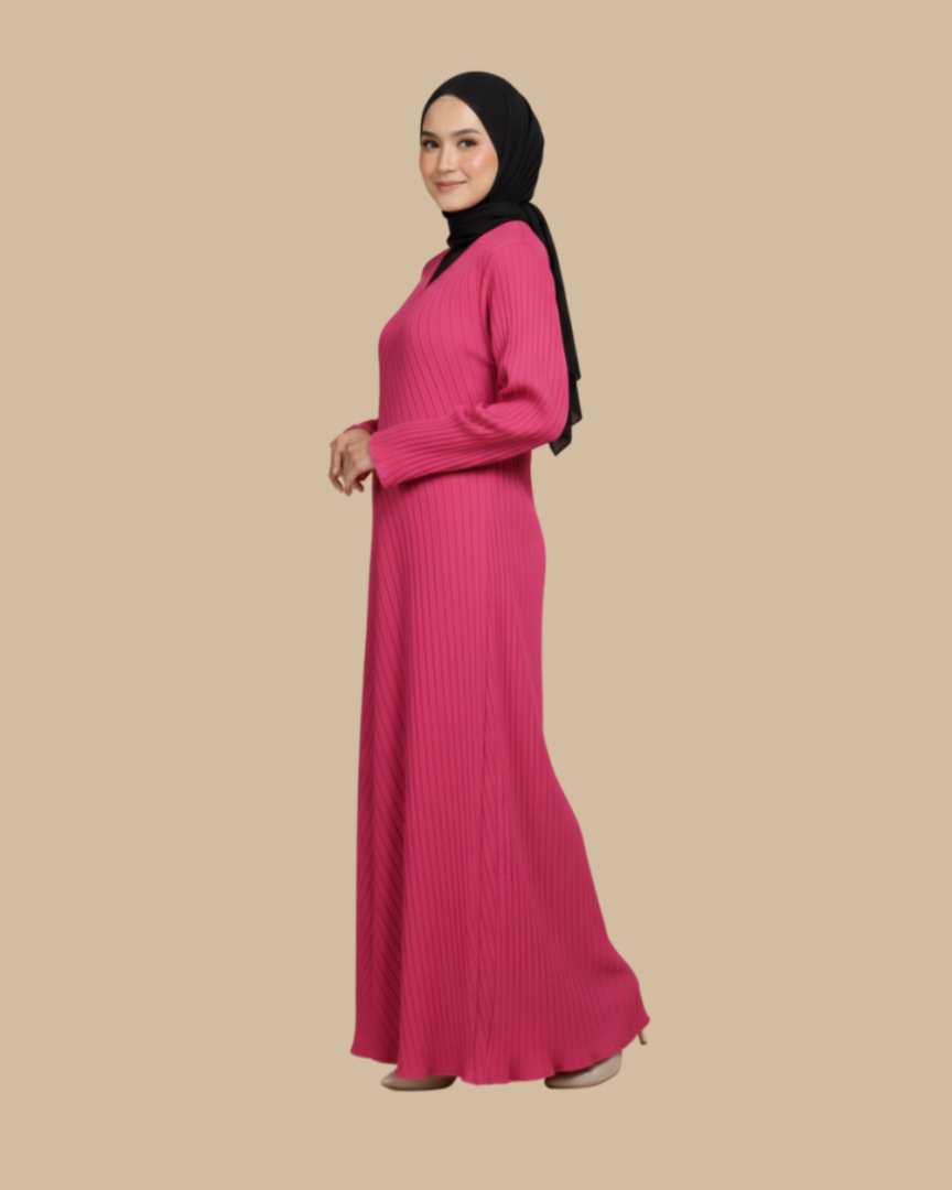 Abaya Izara Pleated - Hot Pink