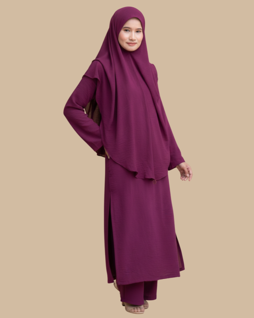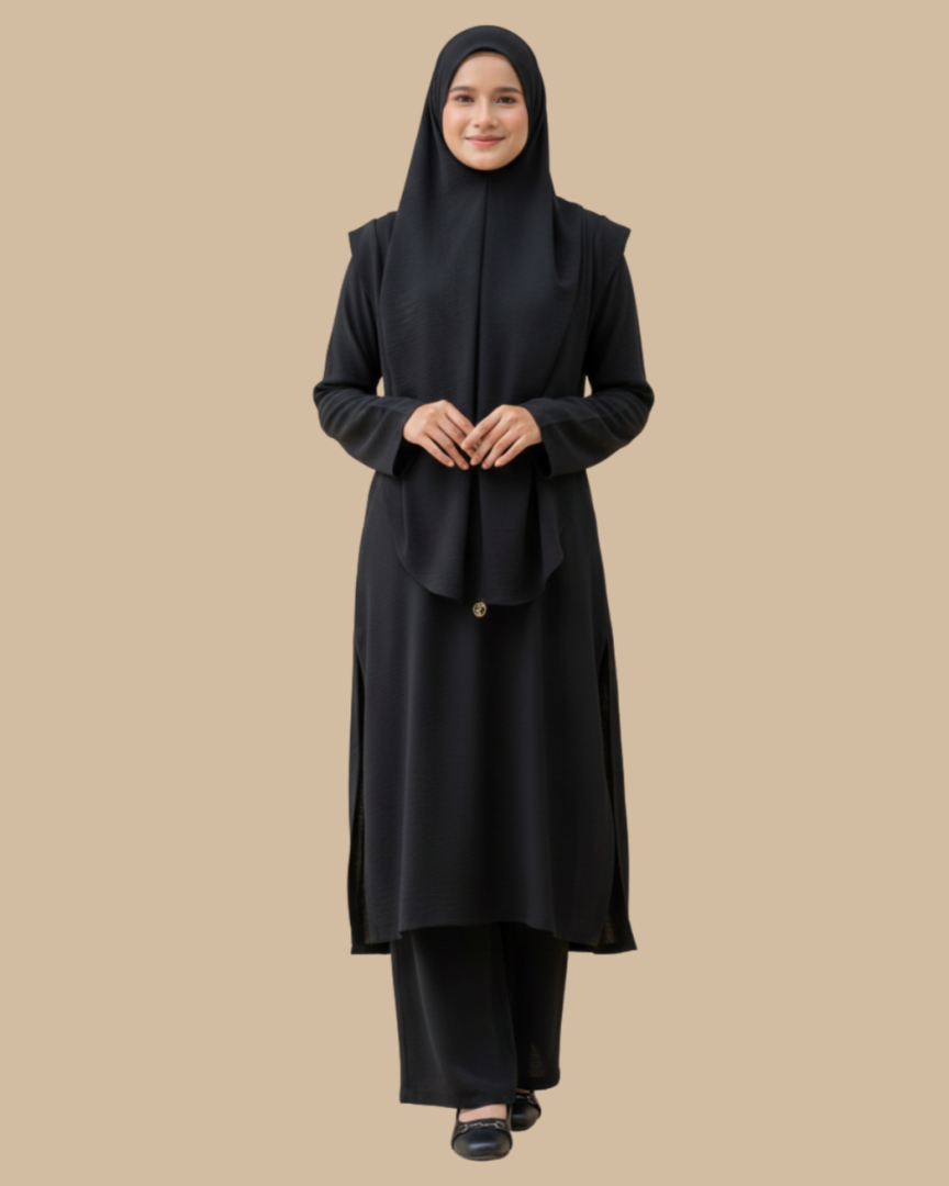 Set Jubah & Seluar Faraa ELEMMIERA direka khas untuk wanita Muslimah yang mengutamakan keselesaan tanpa mengorbankan gaya dalam pakaian Islami mereka.