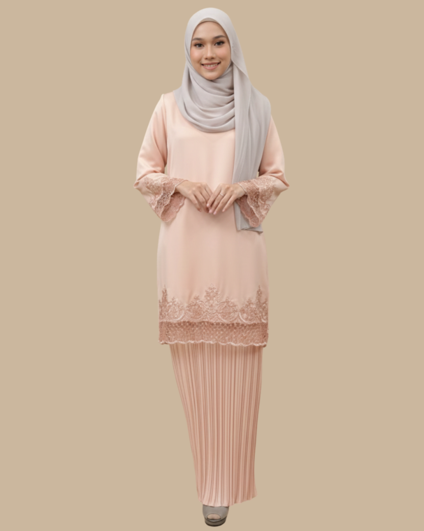 Kurung Khaleda merupakan koleksi kurung moden Elemmiera yang direka untuk memberikan keselesaan optimum kepada pemakainya. Rekaan eksklusif ini menampilkan sentuhan seni butik. Sulaman bunga renda terdapat pada hujung lengan dan hujung baju kurung. Gabungan rekaan yang elegan dengan bunga renda pada baju kurung dan skirt pleated menambah nilai gaya yang anggun.