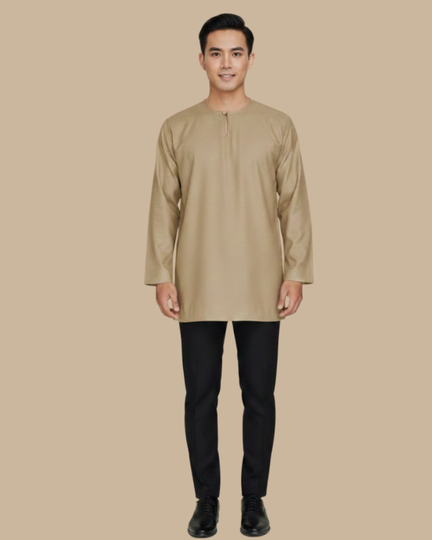 Leher berbentuk bulat seperti Baju Melayu Teluk Belanga, sinonim dengan negeri Johor. Kurta ini mempunyai lengan panjang dan 2 poket tersembunyi di sisi.