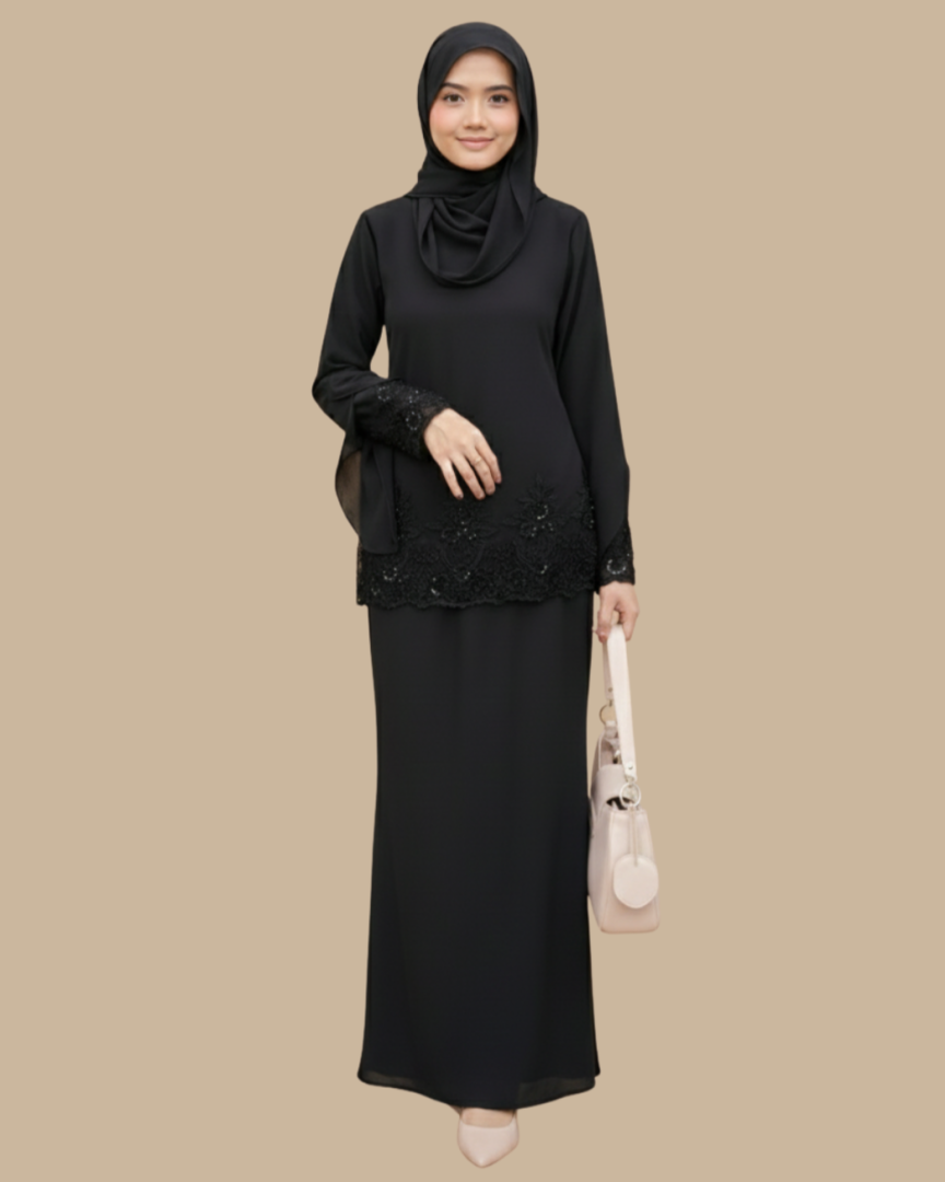 Sulaman manik bunga pada hujung lengan dan hujung baju