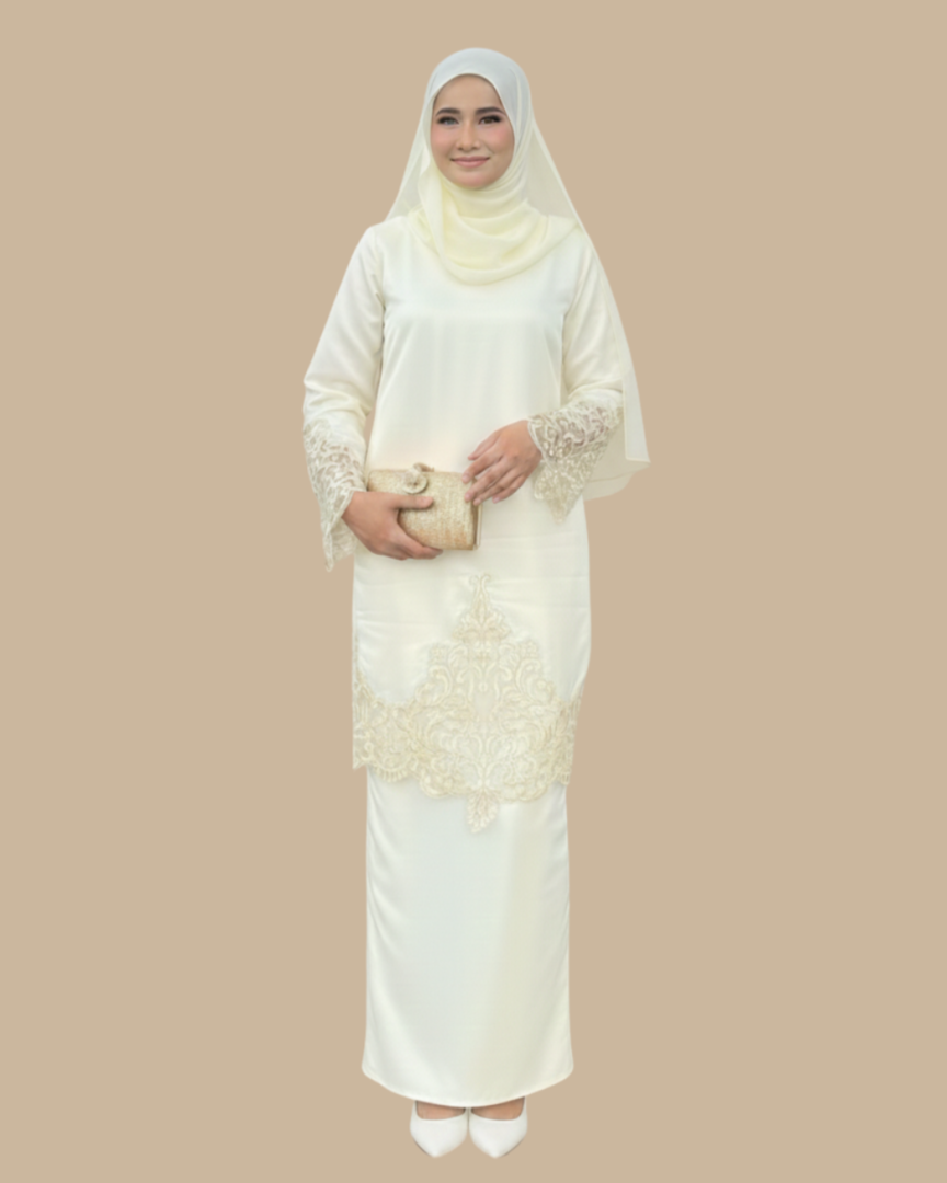 Kurung klasik dengan sentuhan moden, potongan yang menyanjung bentuk tubuh, fabrik satin premium, dan butiran sulaman yang halus. Sesuai untuk semua majlis!