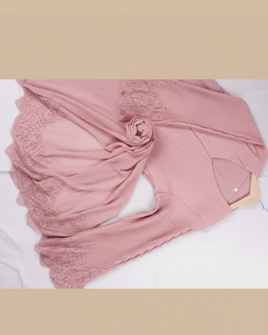 Abaya UAE Small Flower Laces Pleated - Soft Pink